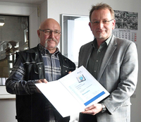 Frankenfeld erhält Ehrenpreis der Berufsgenossenschaft Rüdiger Loock, Frankenfeld (l.), nimmt den Preis von Guido Stadtmann, BGHW, in EmpfangVerl - Die…