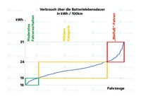 Stromsparen auf der Straße: Die Schlüsselrolle des Fahrverhaltens in der Batteriealterung von Elektroautos Verbrauch über die Batterielebensdauer in kWh /…