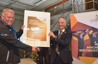WorldSkills Germany-Chef Hubert Romer (r.) gratuliert dem Bildungswerk BAU Hessen-Thüringen (Bildquelle: @WorldSkills Germany/Jörg Wehrmann)Bildungswerk BAU Hessen-Thüringen e.V. als Leistungszentrum Bauberufe…