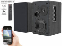 Den vollen Stereo-Klang genießen auvisio Aktives Stereo-Regallautsprecher-Set MSS-95.usb, Holz-Gehäuse, Bluetooth 5, www.pearl.de- 120 Watt für Stereo-Sound wie aus der großen…