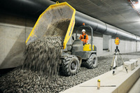 HKL unterstützte die Willke rail construction beim Ausbau der U-Bahn-Linie U4. Ein Dumper von HKL kippt den Schotter für die…