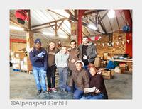 Engagement für Flüchtlinge Gemeinsam mit Flüchtlingen helfen die Alpensped-Mitarbeiter bei der Kleidersortierung. (Bildquelle: Alpensped GmbH)Mannheim - 7.000 Kopfkissen und Bettdecken…
