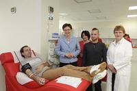 Internationale Woche der Plasmaspende: Ministerin Heike Taubert besucht Haema Blut- und Plasmaspendezentrum in Erfurt Spender Peter Orschel, Ministerin Taubert, Managerin…