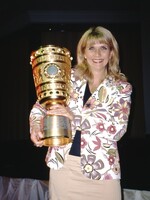 Petra Vieten beim Pokalfinale in Berlin mit original DFB-PokalDüsseldorf, 08.02.2024: Berlin, Berlin, wir fahren nach Berlin! Während die Fans von…