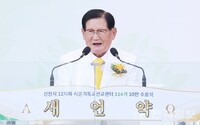 Vorsitzender Man Hee Lee bewegt am 12.November die Zuhörer mit seiner Rede bei der "100.000"-Abschlussfeier von Shincheonji. Am 12. November…