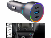Während der Fahrt Smartphone, Notebook & Co. extra-schnell aufladen revolt Kfz-USB-Ladegerät für 12/24 V mit insgesamt 135 W, 2x USB-C,…