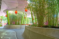 Panda Garden im Zoo Berlin 3D-Beeteinfassung und Sitzbank in einem. (Bildquelle: OPTERRA/Sven-Erik Tornow)Meng Meng und Jiao Quing sind die beiden…