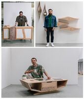 Darren Scott, Marcin Waszak, Farrell Livingstone mit seinen Möbelstücken (Bildquelle: Ben Tynegate)Ryecotewood Furniture Centre am City of Oxford College ist…