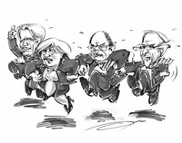 Schnellzeichner und Karrikaturist Andreas Otto begleitet den bayerischen Kommunalwahlkampf mit personifizierten Karrikaturen. Bepiel Bundestagswahl: die VerfolgungshatzEndspurt und Zieleinlauf bei der…