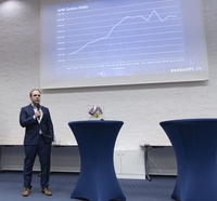 Fabian Brüssel präsentiert die regionale Suchmaschine auskunft.de bei der Nominierung für den etablierten regionalen Mittelstandspreis Fabian Brüssel während seiner Präsentation…