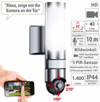 VisorTech LED-Außenwandleuchte & WLAN-HD-Kamera mit PIR
