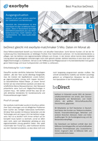 Interview mit beDirect-Geschäftsführer Roland Meyer Best Practice beDirect - exorbyte-matchmakerbeDirect ist ein joint venture zwischen der Creditreform und Bertelsmann. Herzstück…