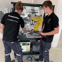 Training für die Disziplin Robot Systems Integration: Lars Jahnke (23) (l.) und Cedric Schramm (18) (Bildquelle: FANUC Deutschland GmbH)Während die…