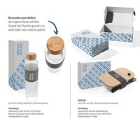 2 % Spende an Water.org durch den Verkauf individuell bedruckter Flaschen und Lunchboxen aus Glas mit Bambusdeckel M Box "Stay…
