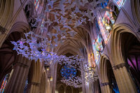 Mehr als 2000 weiße Papiertauben schweben in der National Cathedral in Washington, DC. (Bildquelle: Danielle E. Thomas)Angesichts der andauernden Corona-Pandemie…