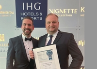 Sie strahlen um die Wette: das Team vom Holiday Inn Düsseldorf – Hafen und Direktor Christian Schmidt. Denn vor Kurzem…