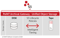 Siegen. Die neue Storage-Lösung PoINT Archival Gateway - Unified Object Storage ist ein Software-definierter S3 Objektspeicher, der die Speicherklassen Disk…