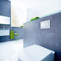Die Betätigungsplatte Geberit Sigma70 scheint vor der Wand zu schweben Plane Oberfläche, geringe Tiefe und abgerundete Kanten verleihen Geberit Sigma70…