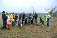 "Ökologischer Wechselbonus" für neue Stromkunden Hans-Martin Flinspach von der Streuobstinitiative zeigt Erdgas Südwest Mitarbeitern richtiges Baumpflanzen.(Bretten) "Von hier zu dir"…