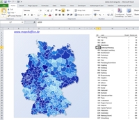 Kundendaten mit PLZ-Nummern auf einer Excel Deutschlandkarte mit Landkreisen in drei Schritten einfärben für Controlling und Geschäftsberichte. Excel Landkreiskarte Maps4Office…