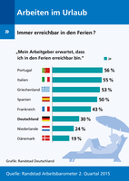 Ergebnisse der Online-Umfrage zeigen innerhalb Europas ein Nord-Süd-Gefälle Im Urlaub für den Chef erreichbar sein? Damit beschäftigt sich das Randstad…