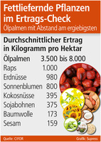 Ölpalmen mit Abstand am ergiebigsten Grafik: Supresssup.- Nutzpflanzen, die einen hohen Ertrag pro Fläche erzeugen, bilden einen wesentlichen Eckpfeiler für…