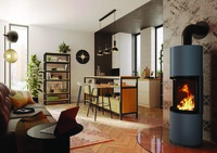 Die Zukunft des nachhaltigen Heizens Schlanker Kaminofen mit nachrüstbarem Speicher und zukunftsorientierter VerbrennungstechnikEin schlanker, kreisrunder Guss-Korpus ausgestattet mit dezent zurückhaltenden…