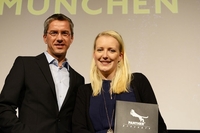 Panther Executive President Andy Fitz mit Produzentin Annika Steffens („Cowboy und Indianer“) (Hamburg/München, 29. November 2012) Auf dem 32. Internationalen…