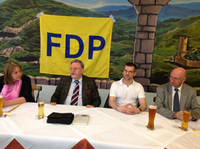 Vorsitzender der FDP-Grundsatzkommission, Roland Kohn zu Gast bei den Weinheimer Liberalen v. links: Andrea Reister, Roland Kohn, Tassilo Eckerle, Günter…