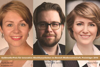 Goldmedia-Preis, Preisträger 2016: Kyrilla Becker, Johannes R. Gerstner, Elena Pelzer (v.l.n.r.)Berlin, München, 19. Januar 2017. Die Forschungs- und Beratungsgruppe Goldmedia…