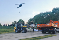 LKW-Kipper, Radlader und Muck Trucks verteilen 100.000 Sandsäcke auf den Magdeburger Deichanlagen. Mietmaschinen aus dem HKL MIETPARK im Einsatz.Magdeburg/Hamburg, 13.…