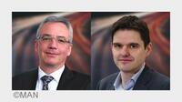 Dr. Stephan Fingerling, CIO, und Markus Lipinsky, Leiter Business Solutions and Telematics MAN Truck and Bus AG erörtern in ihrem…