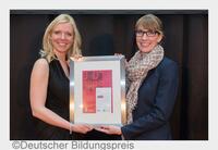 Deutscher Bildungspreis: Ingenics erhält Qualitätssiegel "Exzellenz im Bildungs- und Talentmanagement" Anne Dreyer (TÜV SÜD, li.) übergibt die Urkunde an Rebecca…