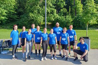 Internationales Team trat vor Ort und virtuell bei Augsburger Firmenlauf an Mitarbeitende der Mediengruppe bei ihrem Lauf in einem Park…