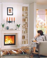 Die extra große Sichtfensterscheibe in den neuen Holzbrand-Heizeinsätzen von Buderus schafft eine besondere Atmosphäre im Wohnraum Buderus Heizeinsätze - größere…