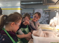 Konzentriert mischt die Mädchengruppe der KGS Donatusschule die »Zutaten« für die Matschbälle (Bildquelle: Deutsches Museum Bonn)Zur Vorbereitung des dauerhaften Angebotes…