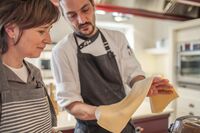Der Chefkoch des Kloster Hornbach Martin Opitz kocht Gäste glücklich Martin Opitz mit einer Teilnehmerin des GourmetkochkursesHORNBACH (kd) - Martin…
