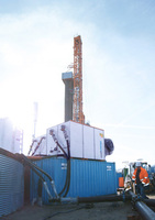 Sinkende Temperaturen: Verdunstungskühltürme sparen Energie Bei geothermischen Probebohrungen bringen mobile Kühltürme das heiße Thermalwasser auf 35 Grad.Dortmund - Okt. 2013.…