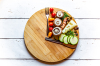 Diäten haben nur kurzfristigen Effekt - Fokus muss auf der Zeit danach liege Vegetables on round chopping board, symbol for…