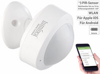 Unterwegs wissen, wenn sich zu Hause etwas tut. Luminea Home Control WLAN-PIR-Bewegungsmelder XMD-101.app mit App, www.pearl.de-Bis zu 1 Jahr Batterie-Laufzeit…