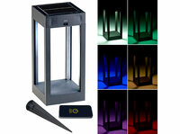 Lunartec; NX-6996; LED; RGB; Licht; Laterne; Effekte; Farbe; Garten; Camping; Solar-Panel; Fernbedienung; Beleuchtung; Strom; Akku; SMD; Dunkelheit; Sensor; Leuchtmodus; automatisch; weiß; hell; Weg