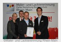 v.l.: Stefanie Schultz, Rainer Huke, Thomas Mainka und Henning Cronemeyer (Bildquelle: Maler- und Lackiererinnung Rhein-Main)Kunden ermittelten die besten Maler- und…