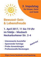 Bewusst-Sein & Lebensfreude Impulstag Plakat (Bildquelle: snyGGG (Sonnensymbol, fotolia))Nach zwei erfolgreichen Impulstagen findet am 1. April 2017 von 11 bis…