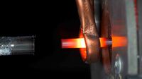 Warmumformen von Schraubenköpfen: Nur noch das Erwärmen bestimmt die Taktzeit. Das Ende des Stiftes wird induktiv erwärmt und vom Stauchzylinder…