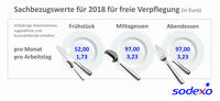 Werte für Verpflegung für das Jahr 2018 werden an die Entwicklung der Verbraucherpreise angepasst Sachbezugswerte freie Verpflegung Prognose 2018 Sodexo…