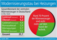Trotzdem noch immer Modernisierungsstau Grafik: wolf-heiztechnik.desup.- Die Zahl der in Deutschland installierten Heizungen mit Brennwerttechnik lag im Jahr 2014 erstmals…