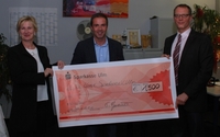 MONARCHIS Grundbesitz sammelte Spenden Von links: Frau Sonja Schneider von der MONARCHIS, Herr Walter Biersack von Ulms Kleine Spatzen und…