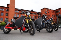 Brandenburgs Wirtschaftsminister Jörg Steinbach auf dem eROCKITModerne LED-Scheinwerfer, Aluminium- und Carbonteile, dazu geballte 16.000 Watt Spitzenleistung eines bürstenlosen Permanentmagnetmotors. Prof.…