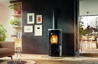 Besonders für Neubauten und Niedrigenergiehäuser geeignet Sehr praktisch: Der Kaminofen ist auf Wunsch mit einem seitlichen Holzfach ausgestattetDer skandinavische Einrichtungsstil…
