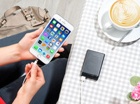 Unterwegs bis zu 2 USB-Mobilgeräte laden Mit der revolt Powerbank PB-160 im Kreditkarten-Format, 5.000 mAh, 2 USB-Ports, www.pearl.de- Lädt bis…